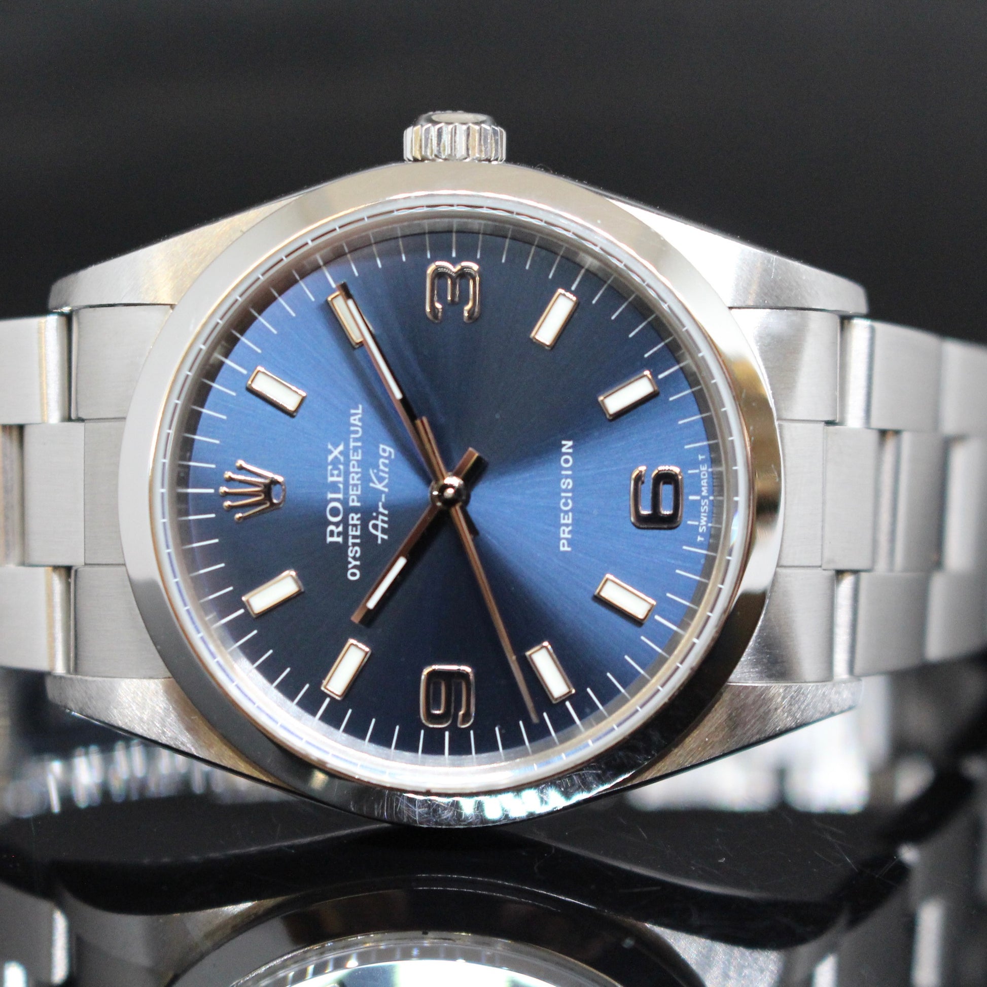Rolex Air King ref.14000, cassa in acciaio, bracciale oyster satinato in acciaio, ghiera liscia, diametro cassa 34mm, movimento automatico, vetro zaffiro, in ottime condizioni, completo di scatola e garanzia della manifattura e garanzia Gioielleria Cenciarini 24 mesi