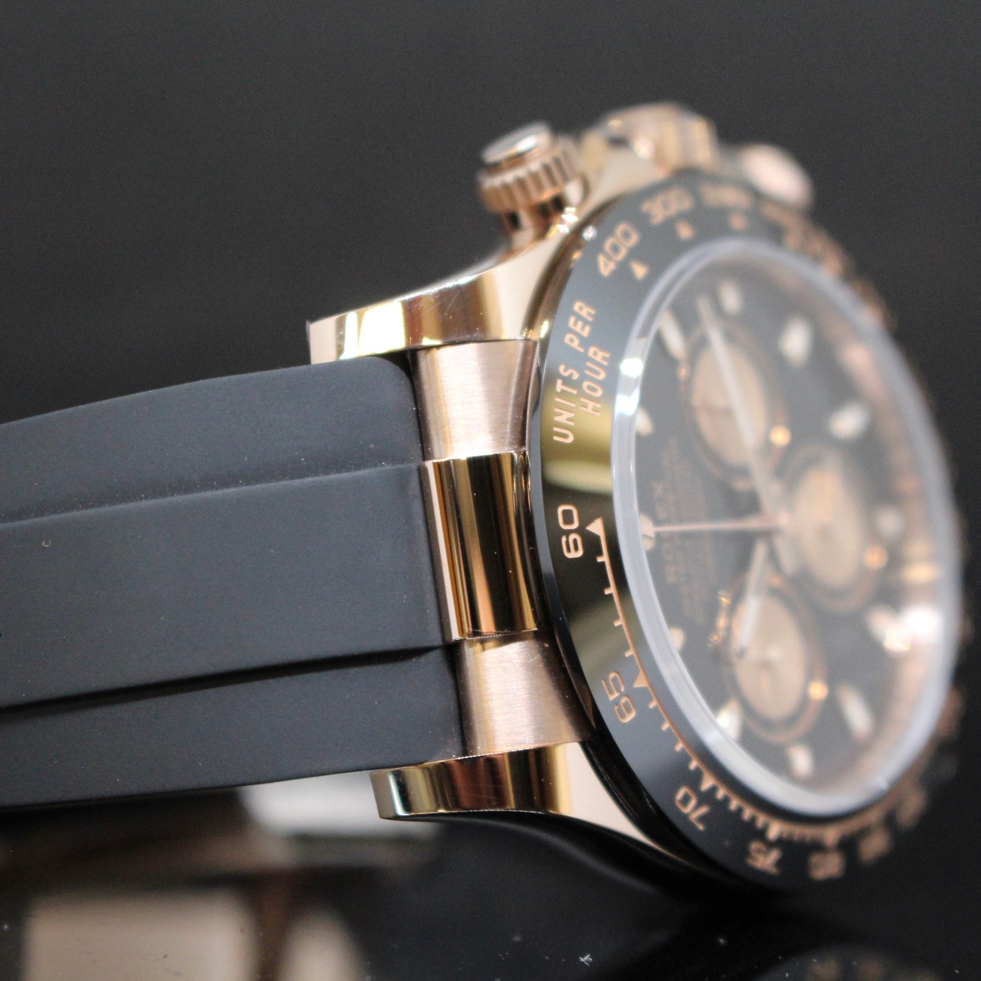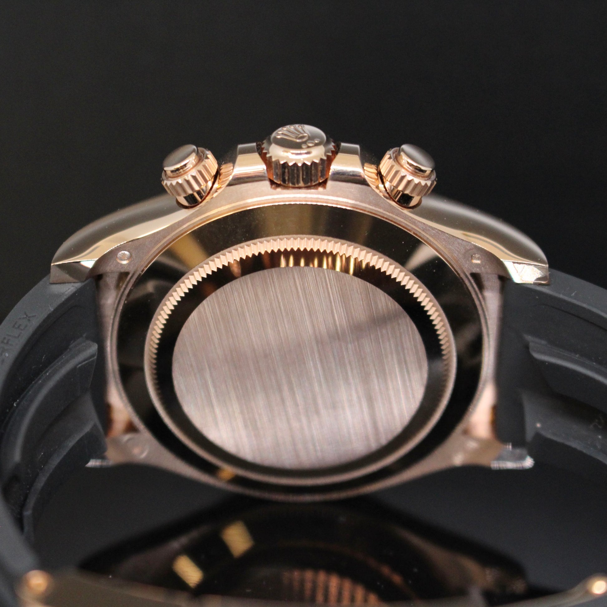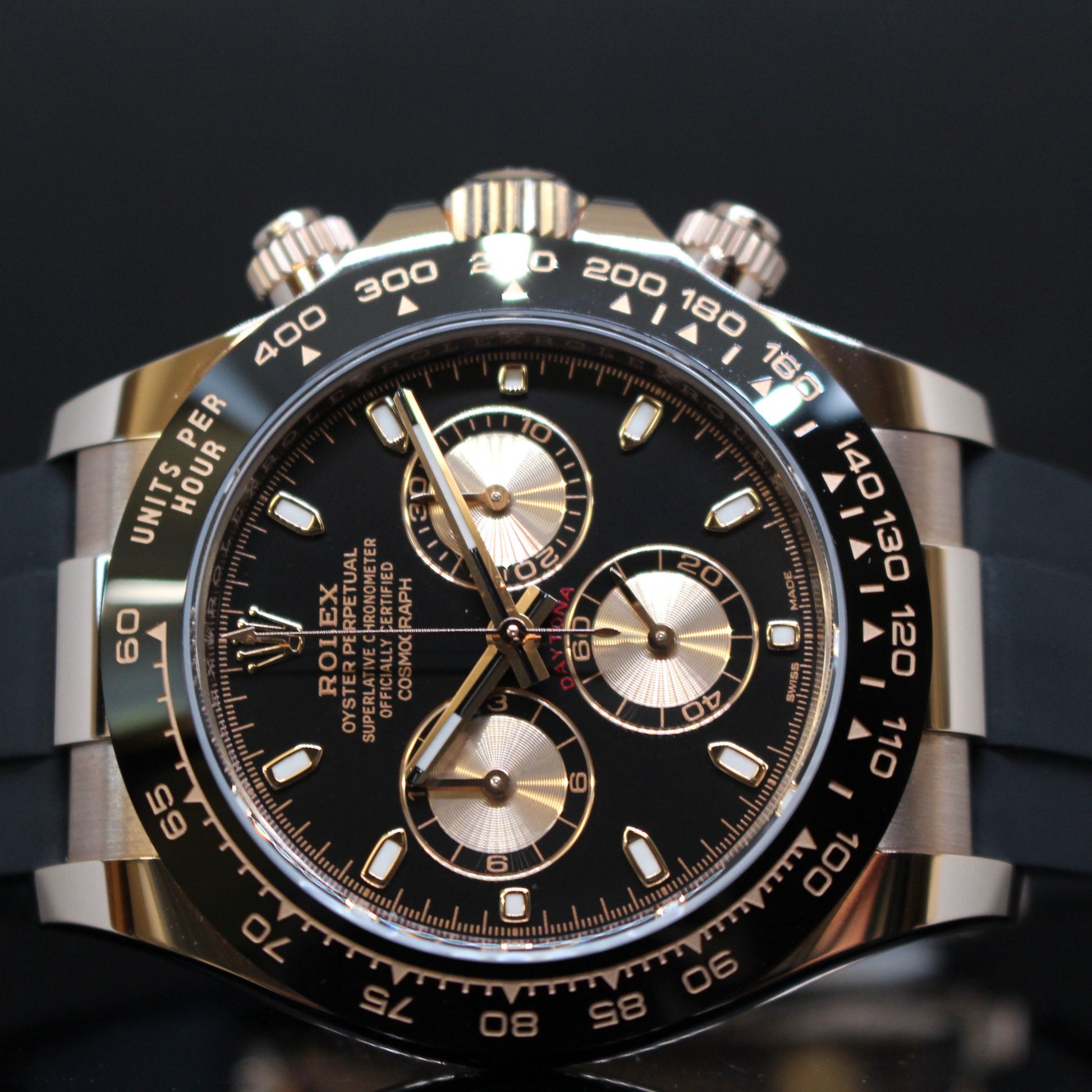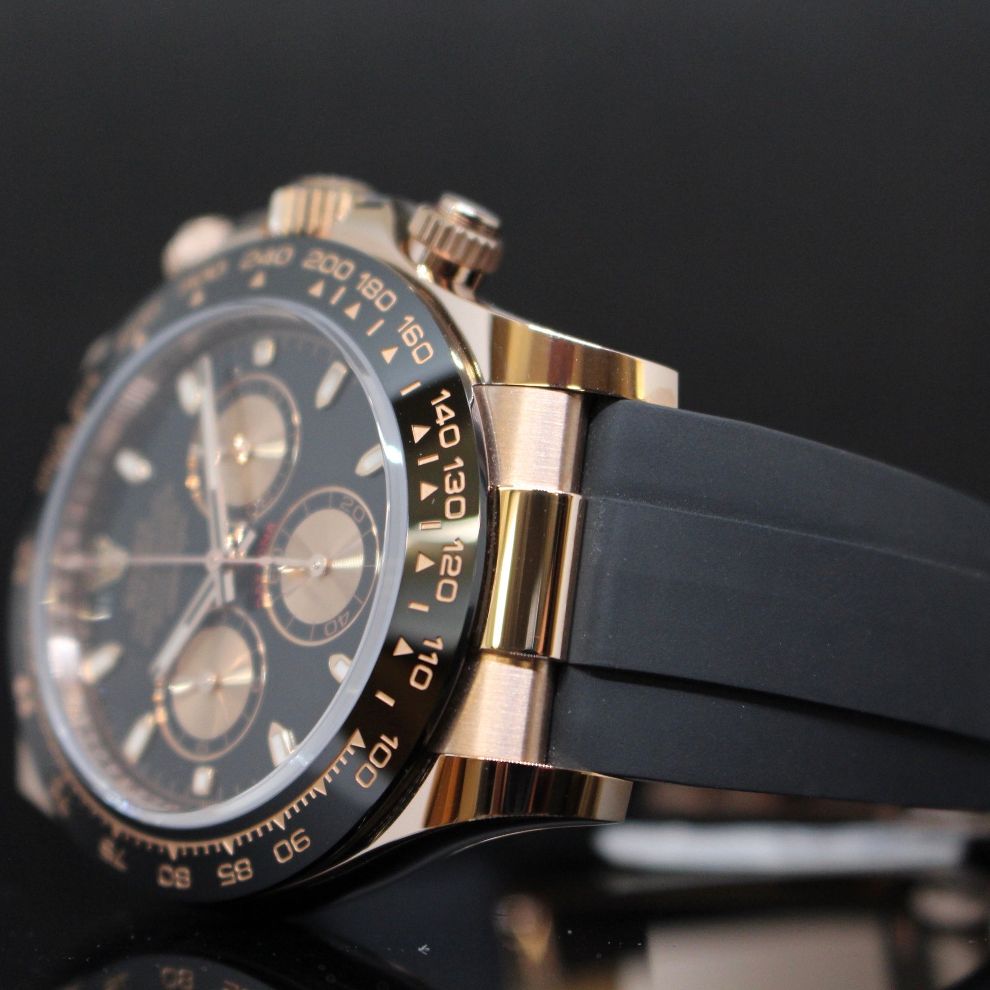 Rolex Daytona ref.116515, cassa in oro rosa, ghiera ceramica nera, quadrante nero, cronografo, cinturino in gomma con chiusura in oro rosa, movimento automatico, vetro zaffiro, diametro cassa 40mm, mai indossato, completo di scatola e garanzia 2023, e garanzia Gioielleria Cenciarini 24 mesi