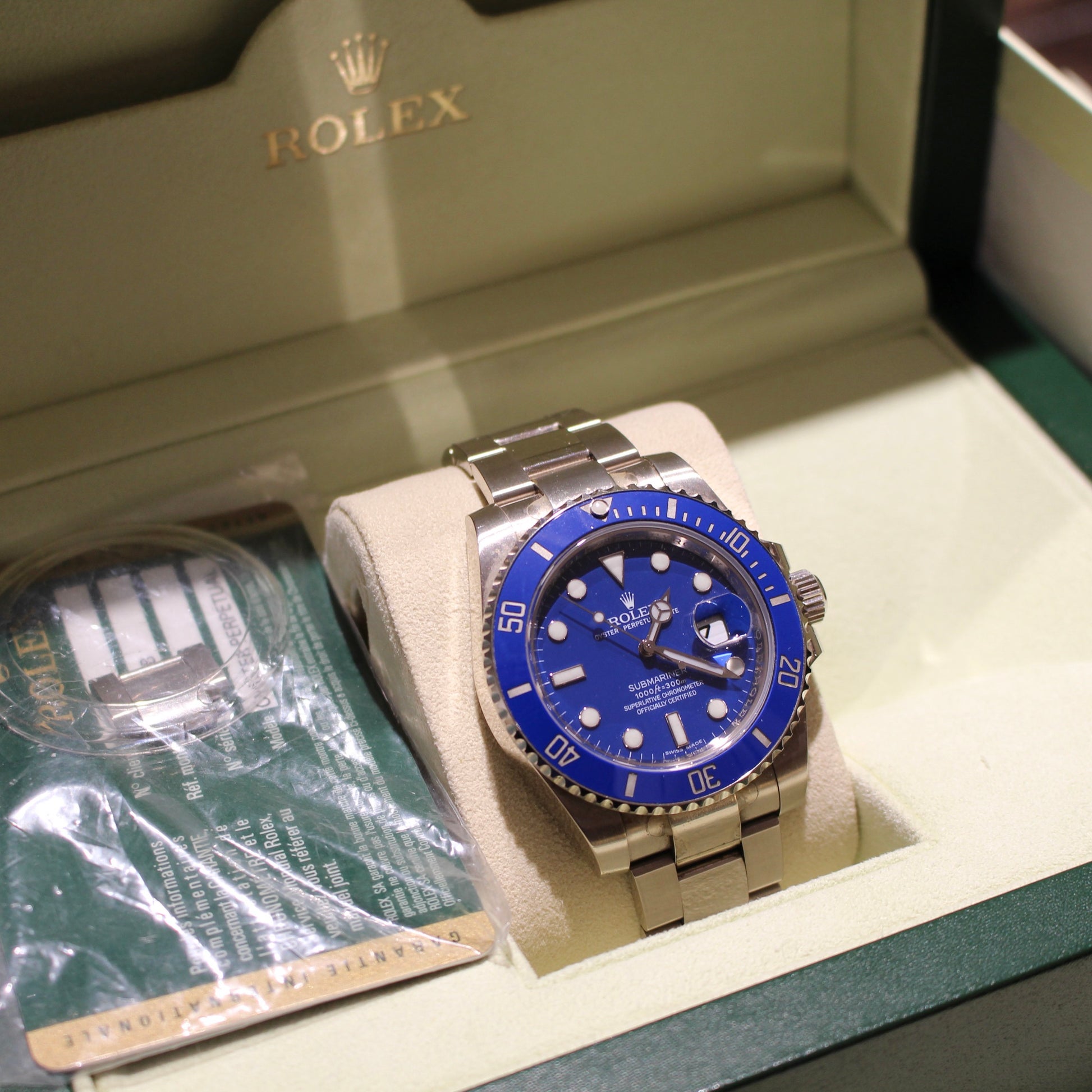 Rolex, Submariner ref.116619, cassa in oro bianco 18kt,bracciale oyster in oro bianco, quadrante blu, ghiera ceramica blu, movimento automatico, diametro cassa 40mm, con pellicole, pari al nuovo, completo di scatola e garanzia della manifattura e garanzia Gioielleria Cenciarini 24 mesi